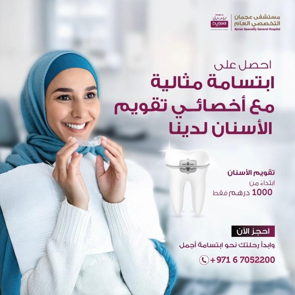 Achieve your dream smile with our expert orthodontist at Ajman Specialty General Hospital! Start your braces journey today with prices starting from just AED 1000. Enjoy personalized care, advanced techniques, and long-lasting results—all in a friendly and professional environment. Book now and take the first step toward a more confident, radiant smile!